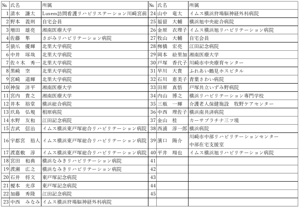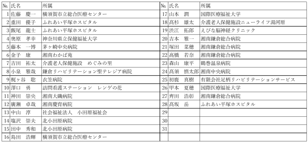 【Aブロック(横浜市・川崎市・相模原市に勤務している正会員)(届け出順)】